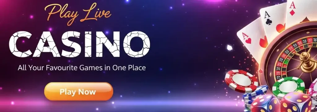 Play live casino games like Teen Patti, Andar Bahar, Poker, Roulette, and Baccarat